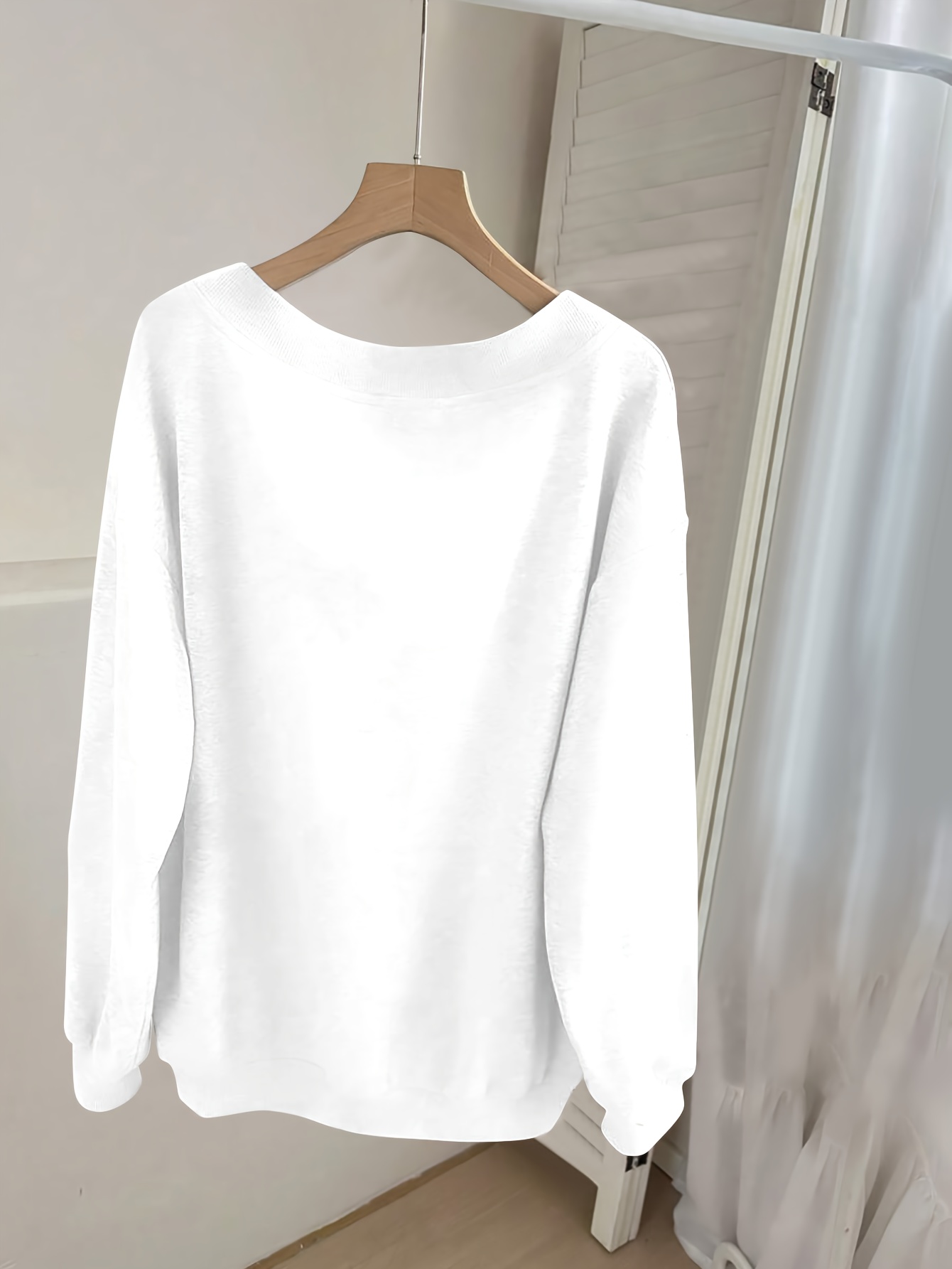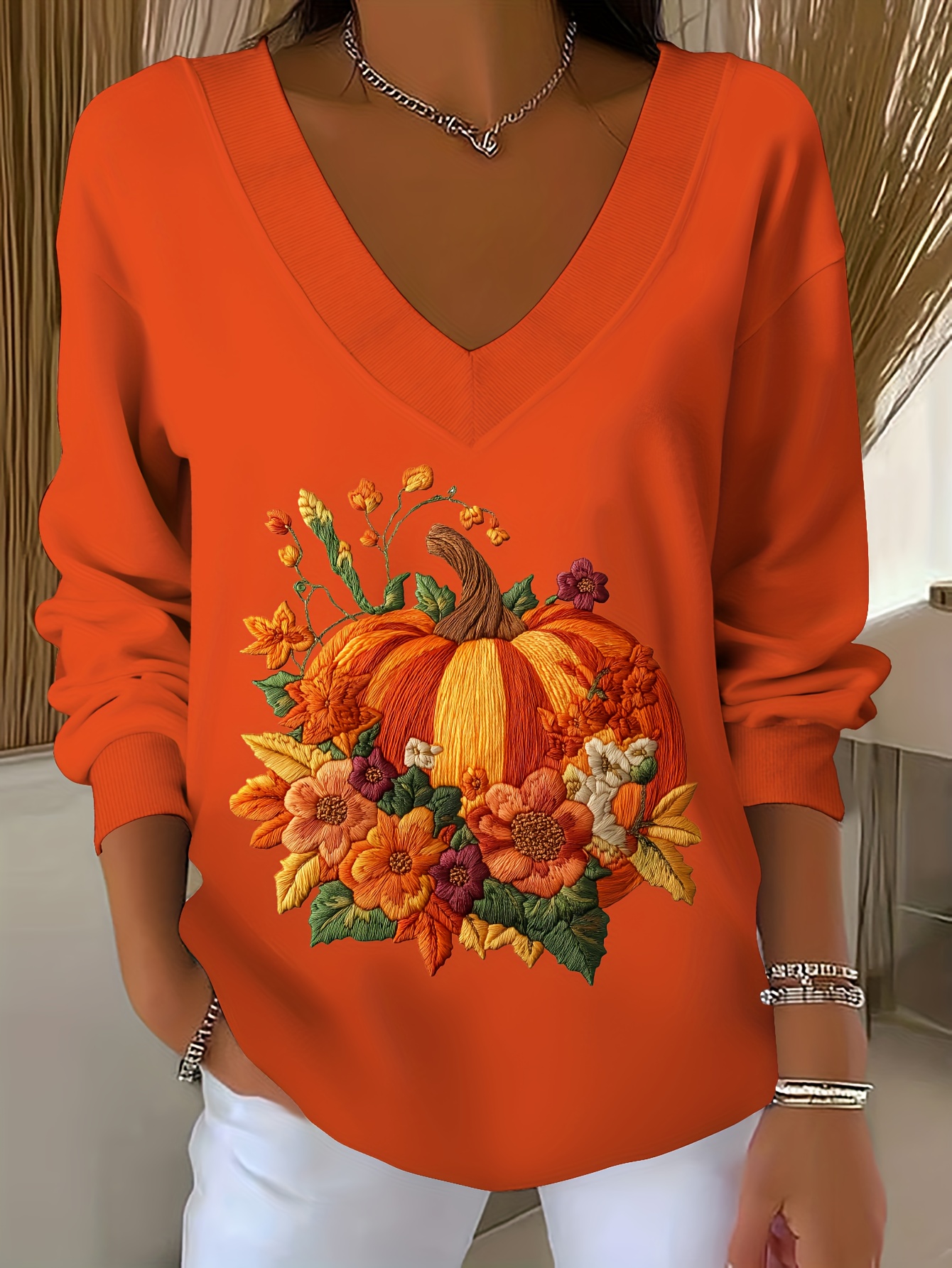 Women'S Halloween Witch Print Sweater - V-Neck Long Sleeve Pullover with Pumpkin & Floral Design, Loose Fit Casual Sweater for Fall/Winter, Halloween Clothes, Seasonal Fashion, Frenchinspired Style, Comfortable Wear, Fall Fashion, Frenchinspired Des