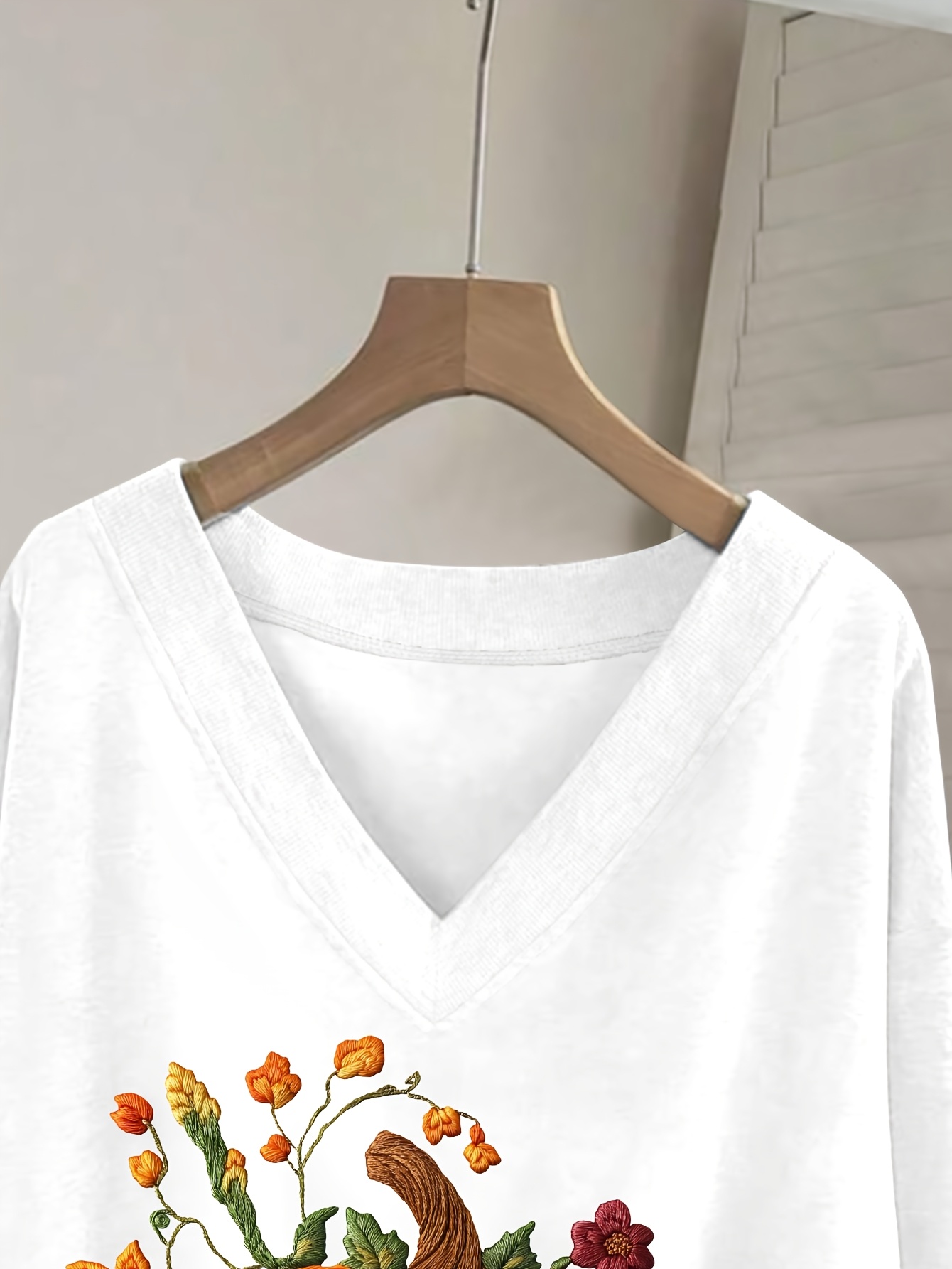 Women'S Halloween Witch Print Sweater - V-Neck Long Sleeve Pullover with Pumpkin & Floral Design, Loose Fit Casual Sweater for Fall/Winter, Halloween Clothes, Seasonal Fashion, Frenchinspired Style, Comfortable Wear, Fall Fashion, Frenchinspired Des