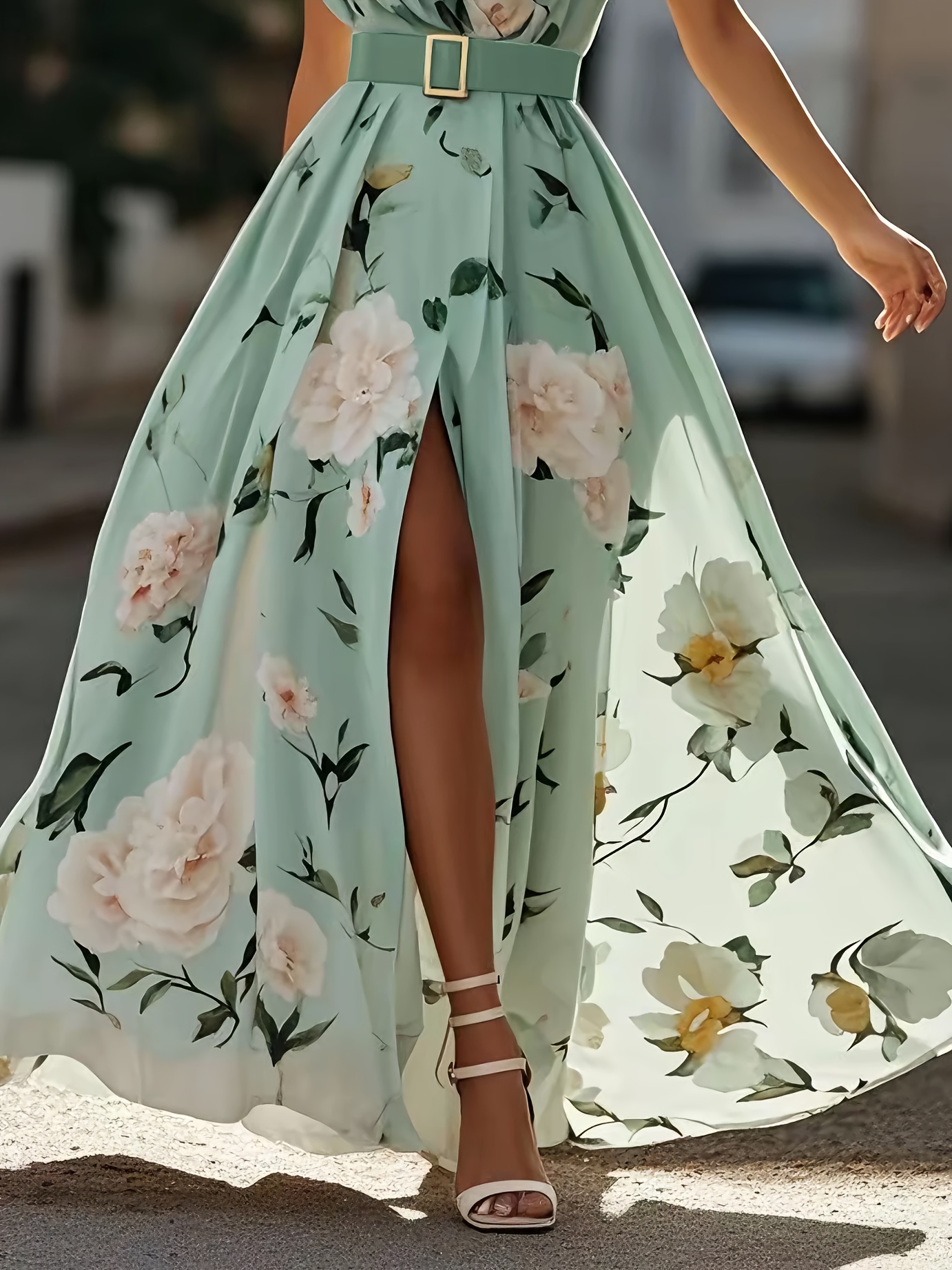 Women'S Elegant Floral maxi dress - One Shoulder Formal & casual party, Wedding Guest Gown - Lightweight Chiffon A-Line Dress with Flowy Train - Spring/Summer/Fall Evening Outfits - LL168, Spring Fashion, Asymmetrical Hemline, Delicate Detailing