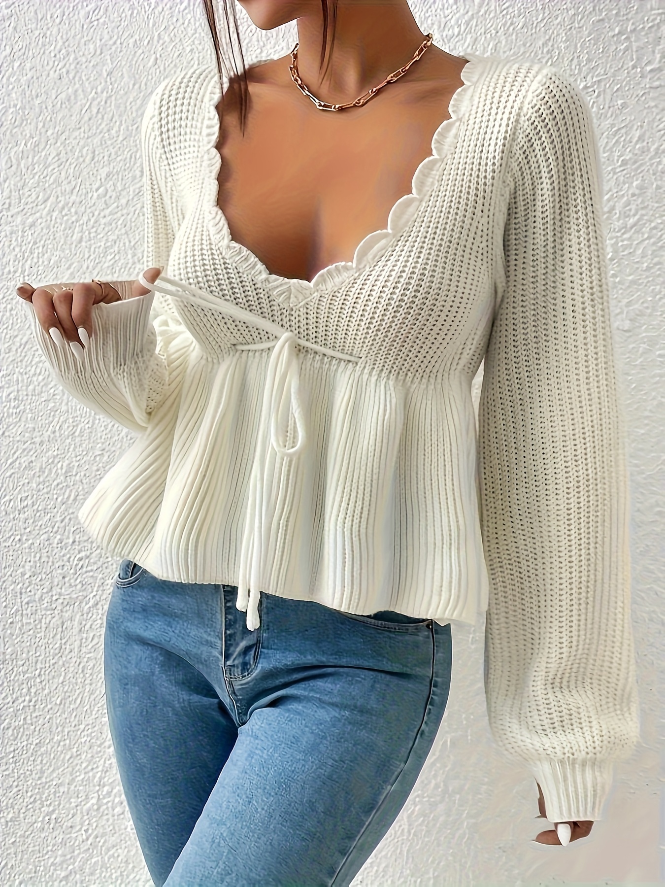 Women's Fashion Pullover with Elegant Petal Collar, Autumn/Winter Sweater with Tie Detail