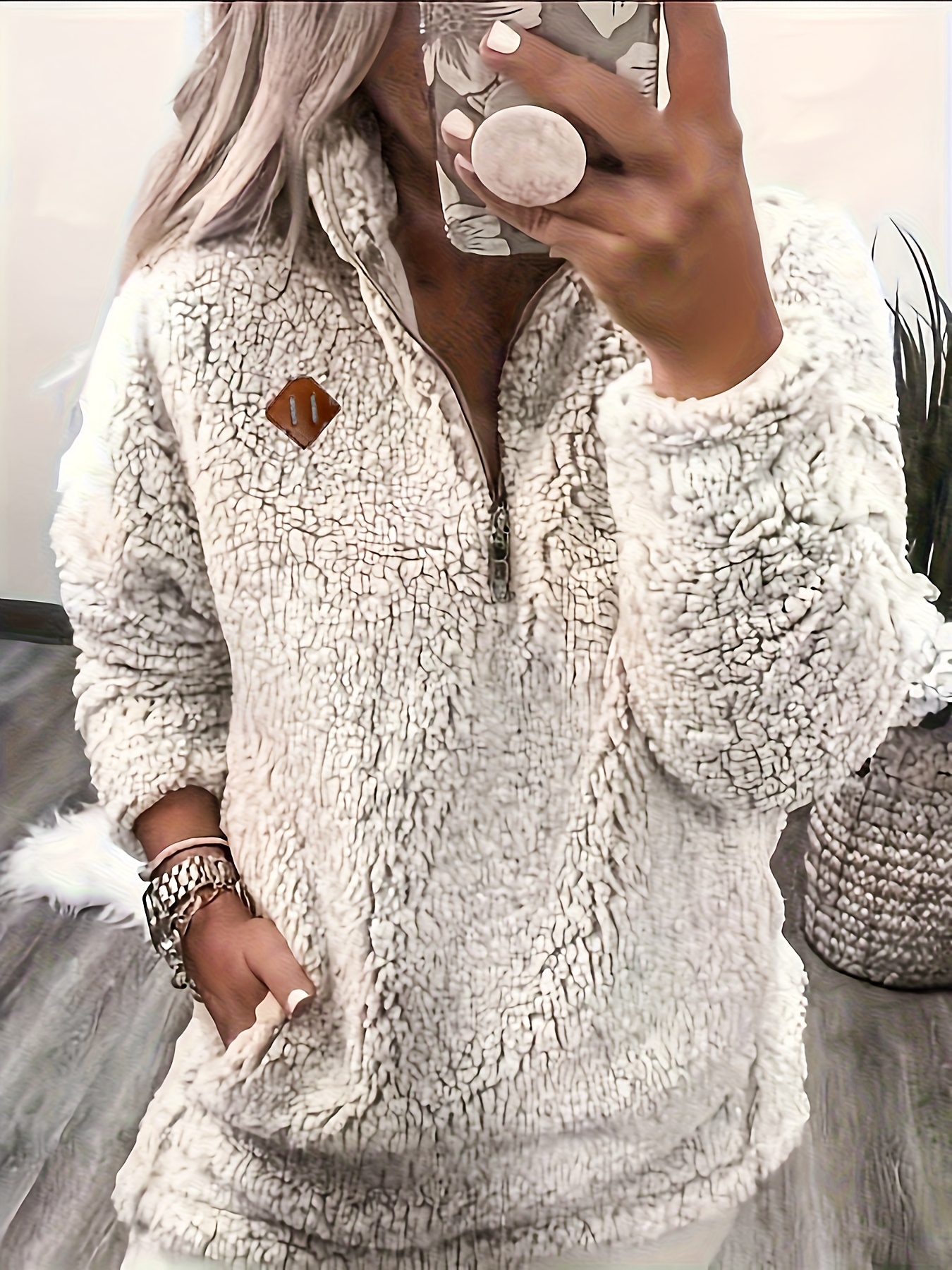 Women's Casual Fashion Pullover Zip Long Sleeve Top